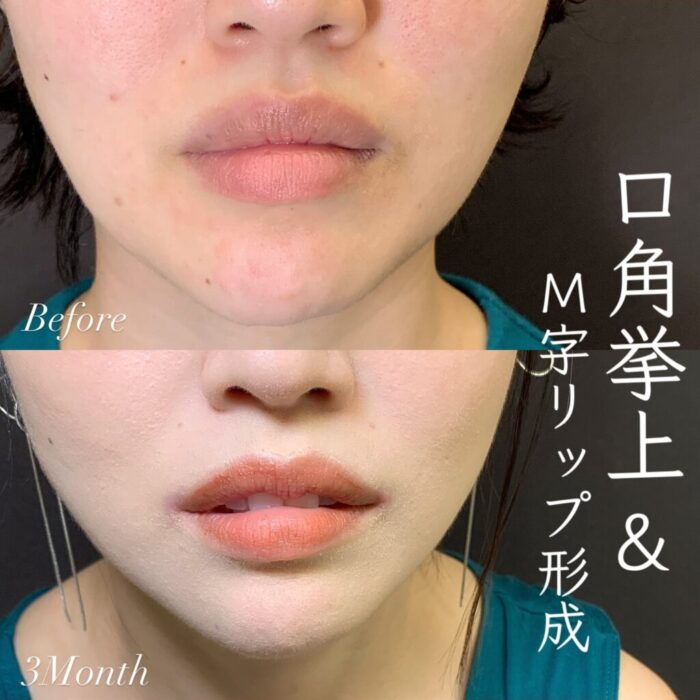 効果の持続期間は、個人差もございますが、6ヶ月〜1年とされています。ですが、M字リップ形成術は、切開をおこない理想の唇の形が定着するため、効果が半永久的です。また、傷跡も内側(粘膜側)にできるので、メイクで隠さなければならないなどの心配がありません。M字リップ形成術をおこなうと、自然と口角も上がった状態となるので、表情が豊かになるといったメリットがあります。