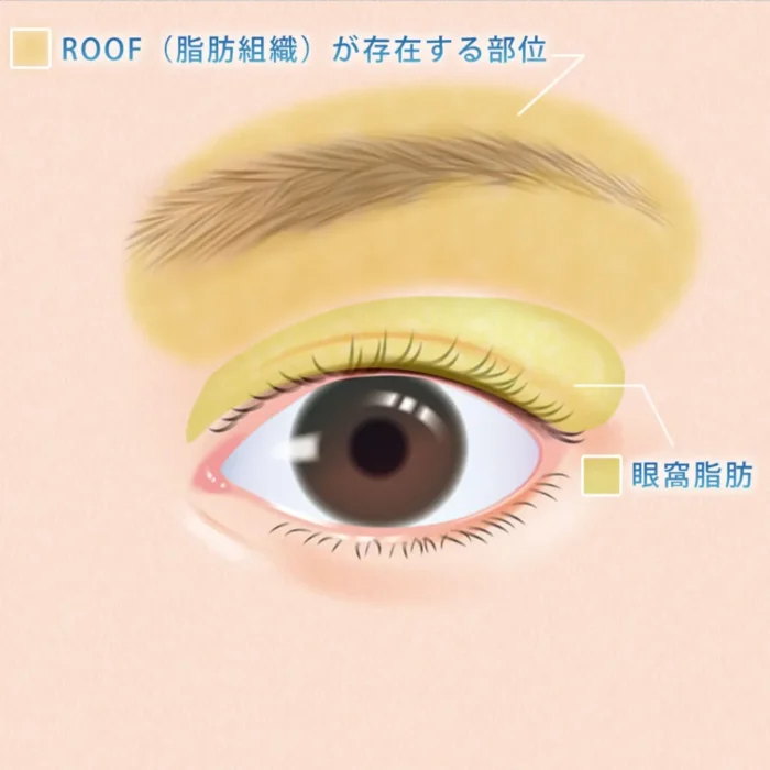 上まぶたと眉毛の間には、ROOFという脂肪組織が存在しています。