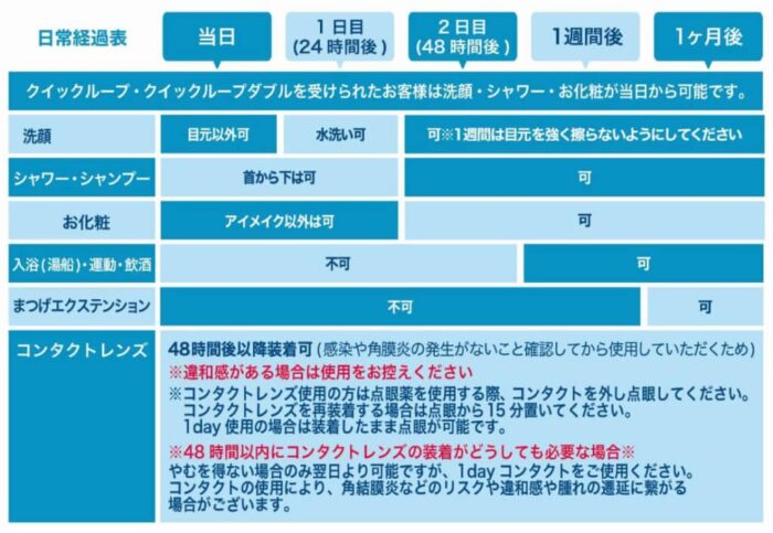 ※術式によっても異なりますので、カウンセリング時に医師からご説明させていただきます。